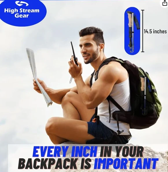 Turstolper for hikiers kollapser ned til 37 cm (14,5 tommer) og veier bare 10 gram hver og gir deg plass til det viktigste og personlige utstyret ditt.