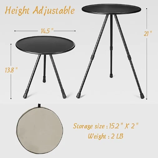 Informasjon om produktstørrelse: Tabelldiameter-14.5 ", bordben-13.8" ~ 21 ", lagringsposediameter-15.2". Dimensjoner etter all lagring: 15.2 "x 2". Generell vekt: 2 lb. Anvendt maksimal vekt er 20 kg