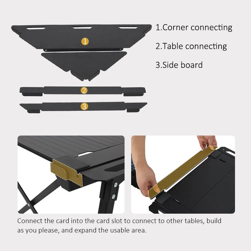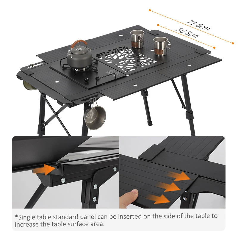 Sammenleggbart aluminiumjerns utendørs campingbord, enten du utforsker robust fjellterreng eller nyter en piknik på flate gressrike felt, håndterer dette campingbordet uanstrengt forskjellige utfordringer, og gir stabil og pålitelig støtte for friluftsliv.