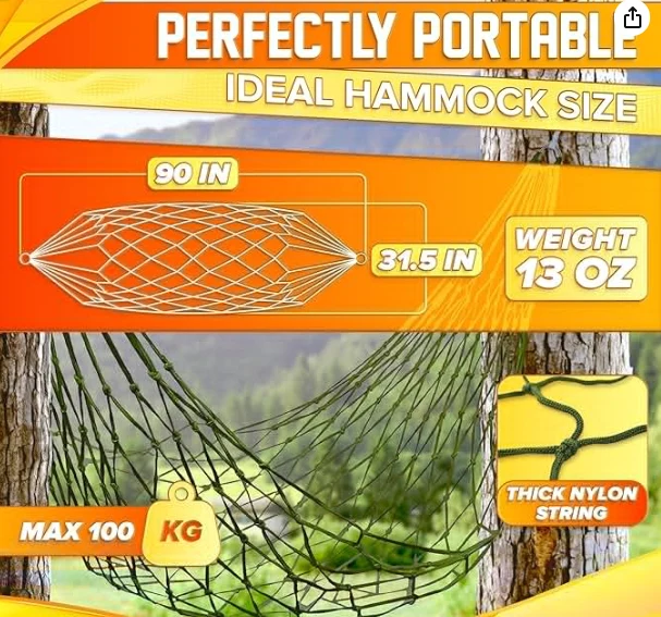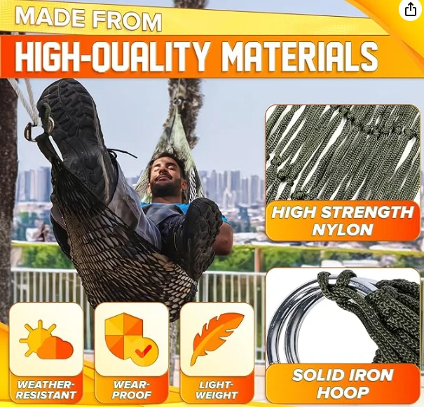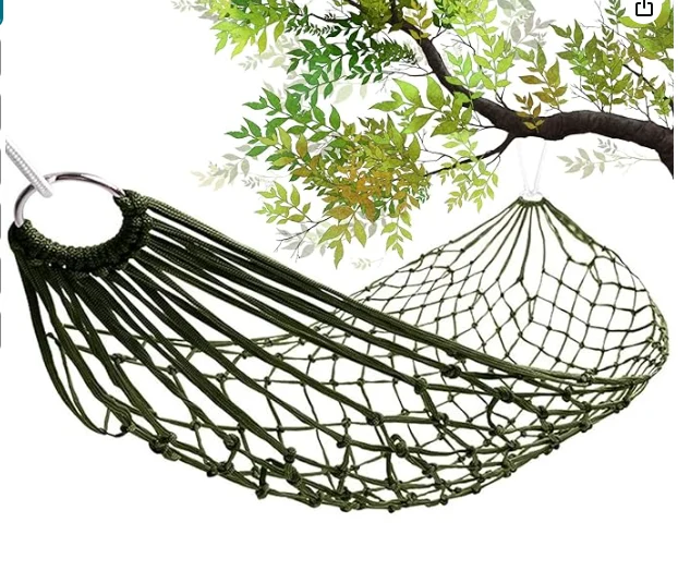 Fotturer hengende hengekøye, denne nylonstrengen hengekøye har høy bærende kapasitet. Disse hengekøye for nylon tau er perfekte for innendørs og utendørs på grunn av høy holdbarhet og motstandsdyktig mot slitasje
