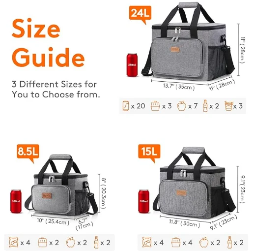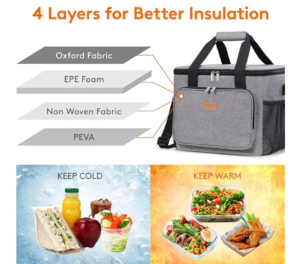 Stor kapasitet: Dimensjoner - 13,8 "(35 cm) × 11" (28 cm) × 11 "(28 cm). Maksimal kapasitet på lunsjboksen for voksne er 24L, og er romslig nok til å lagre 40 bokser med koks (330 m), eller din lunsj.