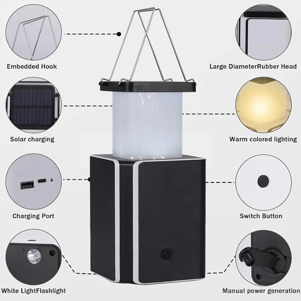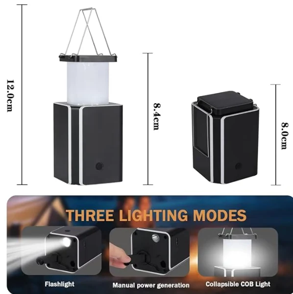 LED solcelle campinglys, akutt camping lyktelys hånd-veiv kraftproduksjon. Hvis du ikke har en lader rundt og det ikke er noen sol, er denne håndbeskyttede generatoren perfekt for å lade lys.