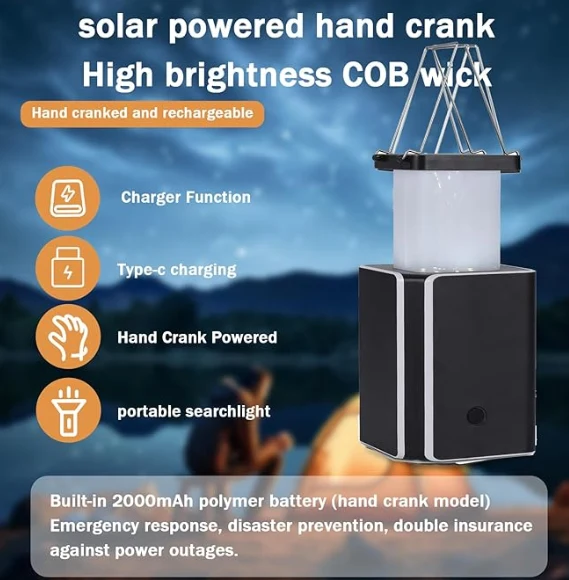IPX4, Emergency Lights Hand-Crank kraftproduksjon, mobil strømfunksjon til strømforsyning av mobiltelefoner ,, nødlys, lommelykter, SOS-varsellamper., Solar LED-oppladbar akutt camping-lykt, solcelleoppladbar, oppladbar type C,