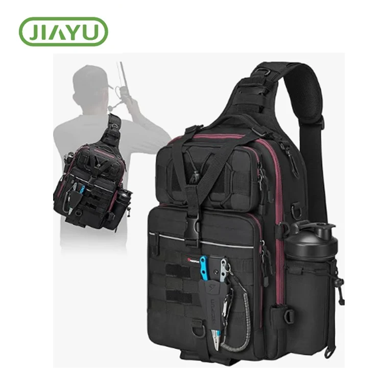 Utendørs fiskepose. Gergonomisk generell design, inkludert den utvidede skulderstroppen og den pustende nettdesign, gjør det behagelig å ha på seg i lengre perioder. Zhejiang Jiayu Outdoor Products Co., Ltd. mens tre eksterne glidelås -lommer lagrer dine daglige nødvendigheter. Den venstre lommen er for vannkopper/flasker, og høyre lomme er for verktøy som tang. Fasjonabel og spenstig, vesken vår er perfekt for utendørs liv