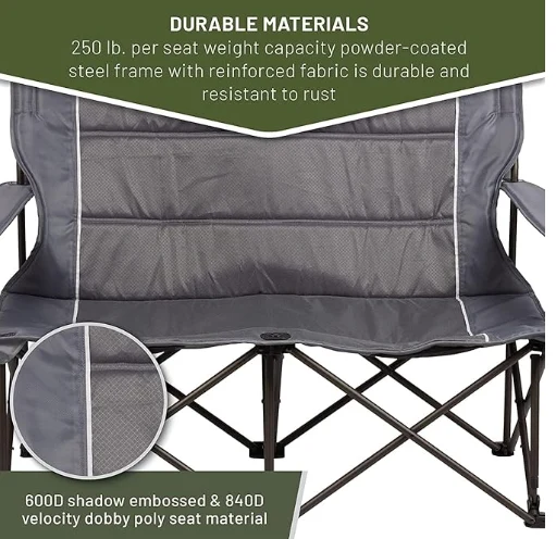 Overdimensjonert polstret sammenleggbar kjærlighetsstol. Justbare armlener kan flyttes til forskjellige høyder for å imøtekomme brukerens holdning, .zhejiang Jiayu Outdoor Products Co., Ltd., vårt ideal for camping, sportsbegivenheter, utendørs, grilling og bakgårdsplenbruk