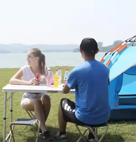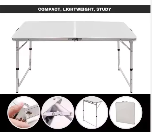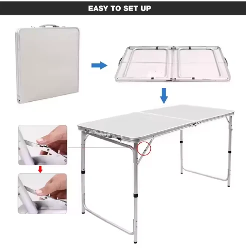 Bærbart sammenleggbar aluminiumsbord, har multifunksjonelle bruksområder, både innendørs og utendørs, inkludert piknikbord, strandbord og camping kjøkkenbord, som brukes til camping, strand, turisme, sportsbegivenheter, bobil utenfor og fiske.