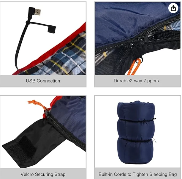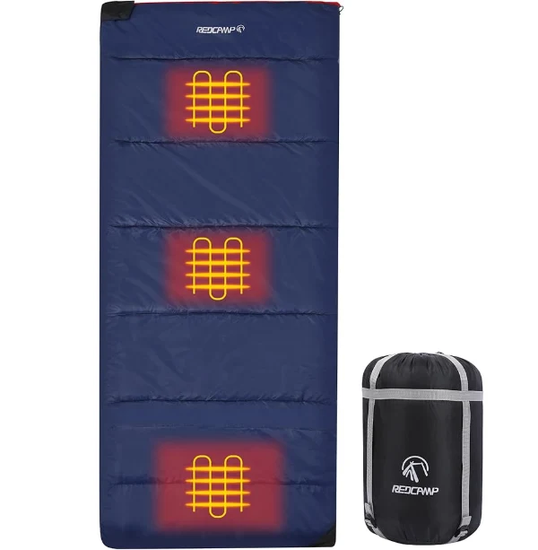 Bærbar oppvarmet vanntett sovepose, ved å trykke på en knapp, gjør dette det enkelt for deg å justere temperaturen i henhold til dine behov, noe som gir varme og komfort hele natten.