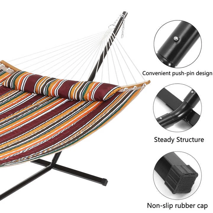 Bærbar nylon camping hengekøye montering av denne hengekøye er veldig enkelt, ingen verktøy er nødvendig. Etter at braketten er samlet, kan hengekøye henges på kroken på braketten direkte, og den kan lett demonteres også.