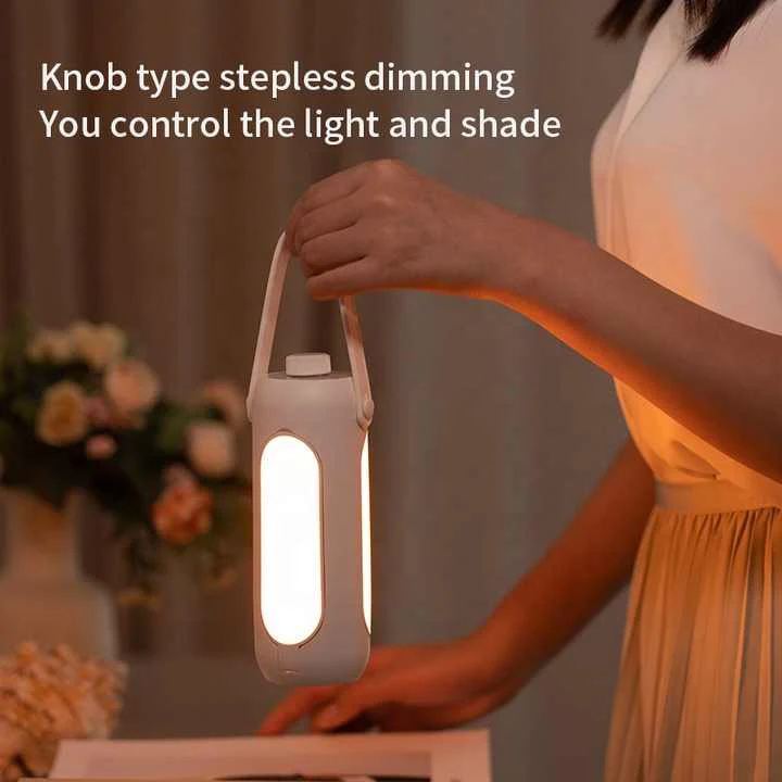Bærbart USB-leirlys, bruk det innebygde håndtaket på toppen for å bære eller henge den lette lykten, eller fjerne diffusoren og bruk den innfelte bunnkroken for å henge lykten opp ned for å tenne et mer omfattende område