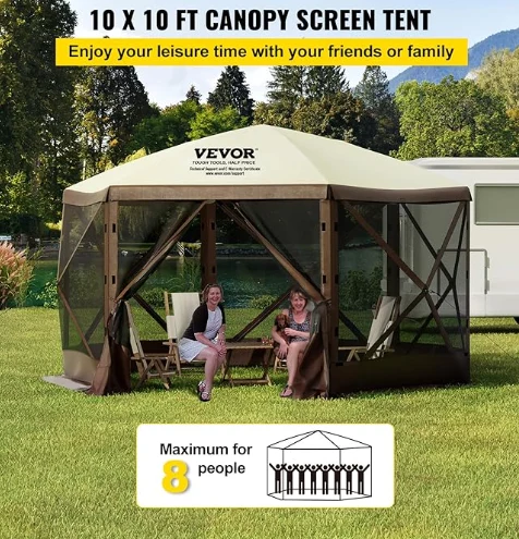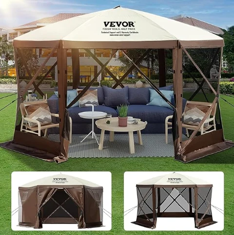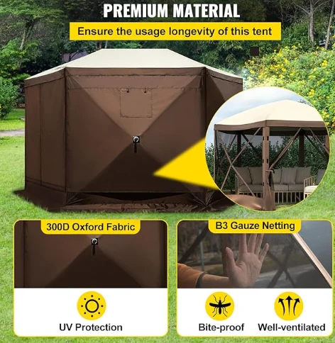 Regnproof Pergola Camping Canopy -telt, Camping Gazebo -telt er laget av 300D Oxford -stoff og B3 gasbindetting. Det er IPX3 vanntett, bittesikker og UV-proof. 12 'x 12' lysthuset gir en stor plass for bruk av utendørs ly.