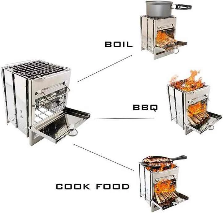 Rustfritt stål minikassettovn, laget av rustfritt stål, er det mulig å utvide vedovnen. Det er veldig praktisk å fortsette.