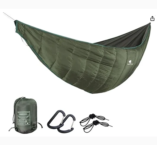Reise camping hengekøye, kombiner komforten med en sovepose og isoleringen av en hengekøye, gjør det lettere å passe med hvilken som helst hengekøye i standard størrelse, og holde deg varm i kaldt vær .zhejiang Jiayu Outdoor Products Co., Ltd. Easy Carrying and Spear plass. Det er perfekt for camping, backpacking, jakt, friluftsaktiviteter, fjellklatring