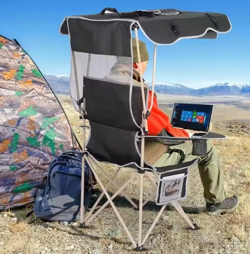 Reise Picnic sammenleggbar stol, som tilbyr eksepsjonell komfort for utendørs avslapning; Den har en sidelomme for lagring av mobiltelefon, solkrem og noen små ting