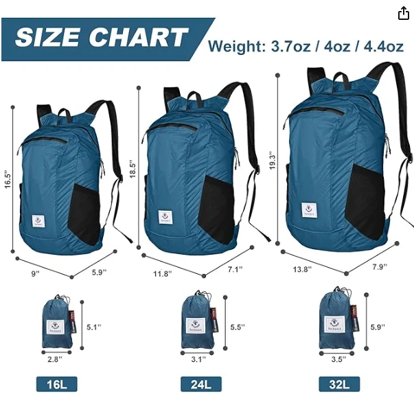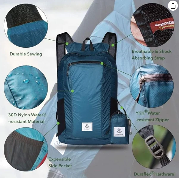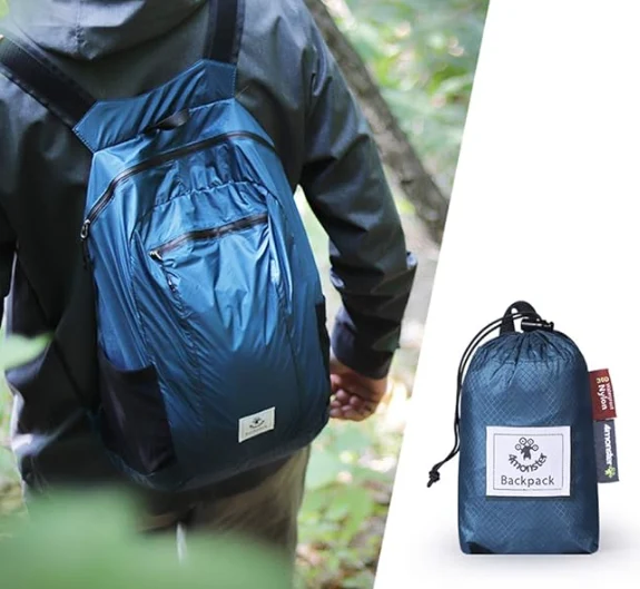 Vanntett lette tursekk, denne lette turnagen er laget av vannavstøtende materiale og glidelås. Forhindre effektivt regnvann fra å fukte telefonen eller kontantene og andre varer i ryggsekken.